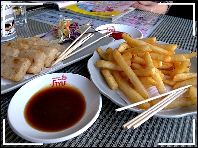 港式蘿蔔糕70元,煎得有點赤赤的,不錯ㄋㄟ。風尚脆薯 70元,滿好吃的喔,只是,還是要趁熱吃啦。