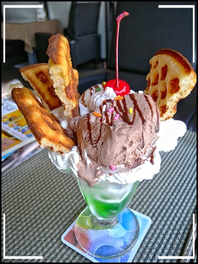妹點了冰淇淋聖代130元,好大、好滿的一杯,我相機剛拿出來,我妹就一直催我拍快一點,