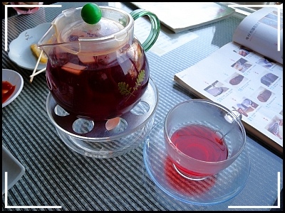 我點了一壺蘋果蔓越莓飲茶150元;在這不像秋天的中午,來壺茶、吹個冷氣,